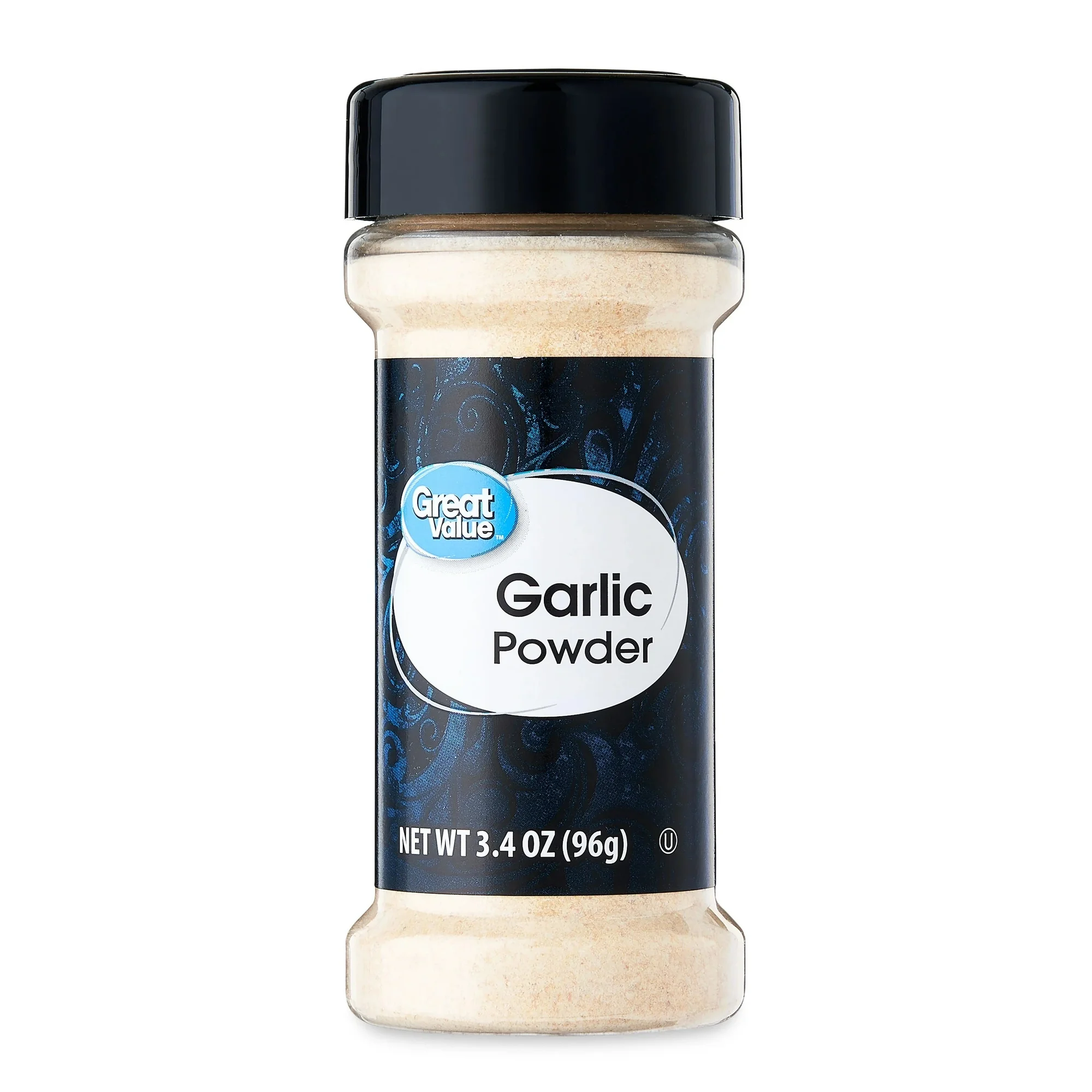 Bring out the flavor in your home-cooked meals with Great Value Garlic Powder. This 3.4-ounce plastic container features an easy-access screw top with a perforated shaker lid that makes it simple to sprinkle the right amount for your dish. Garlic powder is an incredibly versatile spice that can be used in countless recipes. It’s an exceptional seasoning for meats like steak, burgers, chicken, pork, and fish. Vegetables like peppers, onions, zucchini, and broccoli can be tossed in garlic for an additional layer of flavor. Try sprinkling some on to your favorite dishes like pizza, pasta, and lasagna. Or sprinkle some on your favorite bread with butter and warm in the oven for a garlicky treat. The possibilities are endless and no home cook should be without this wonderful spice. Elevate your next dinner with the fantastic flavor and sensational aroma of Great Value Garlic Powder.
