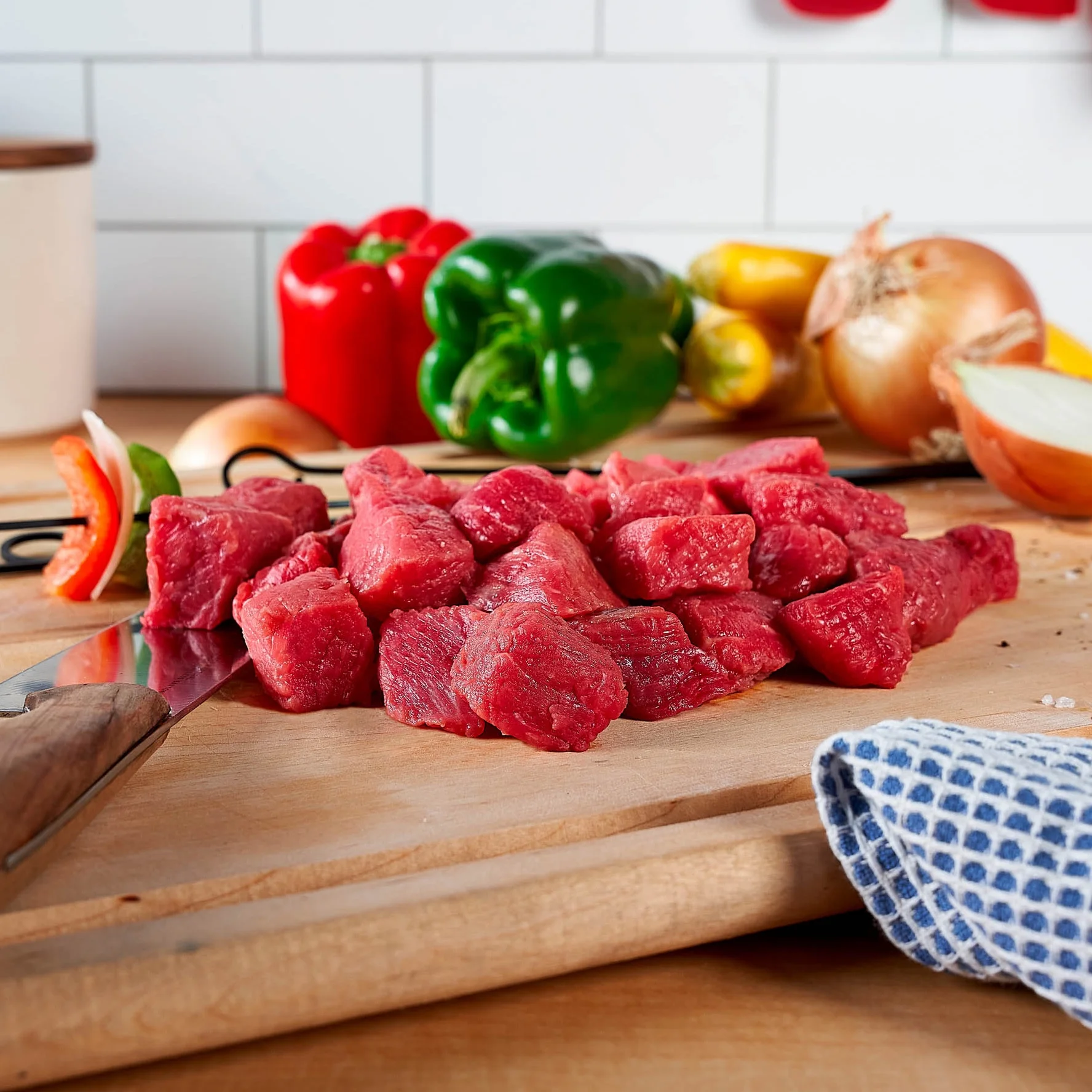 From stews to stir fry, kebabs and more, fresh beef cubes are a key ingredient in family favorite meals. This fresh lean beef is pre-trimmed of extra fat and cut to 1” x 1” x 1” cubes for convenience. Full of rich delicious flavor and perfect for marinating, braising and slow cooking, this quality lean stew meat has less fat than regular stew meat and is packed with 25g of protein per serving so you can feel great about serving it. Shop with confidence for high-quality beef with no compromises online or in-stores.