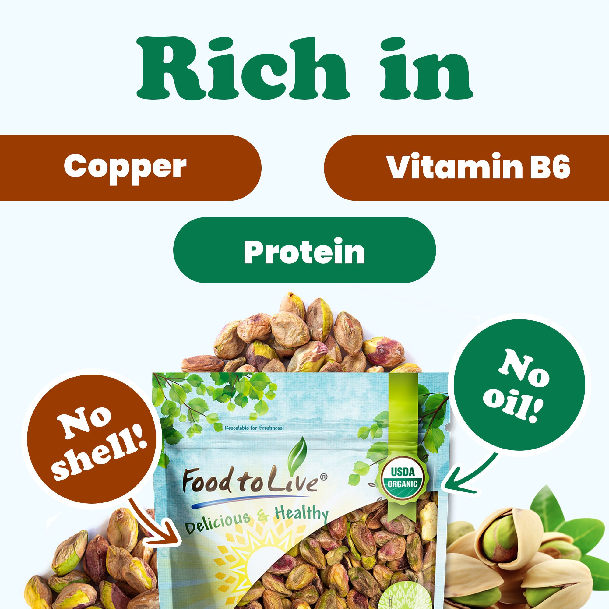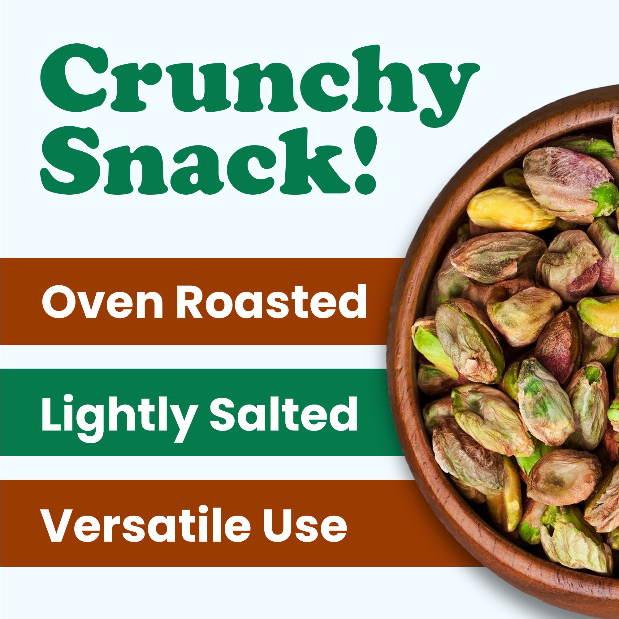 These shelled pistachios are perfect for snacking straight out of the bag or adding a savory crunch to salads and grain bowls. Sprinkle them over oatmeal, yogurt, or ice cream for extra texture. They’re also great for baking—try mixing into cookies, biscotti, or muffins. Use them in savory recipes like pilafs or crush them to coat proteins for a crisp finish.