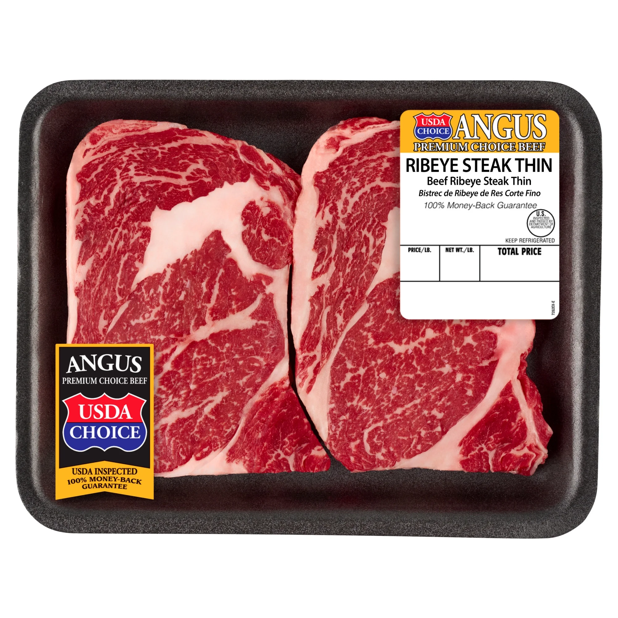 - Thin Ribeye Steak, Choice Angus Beef, 2 per Tray, 0.43 – 1.68 lb