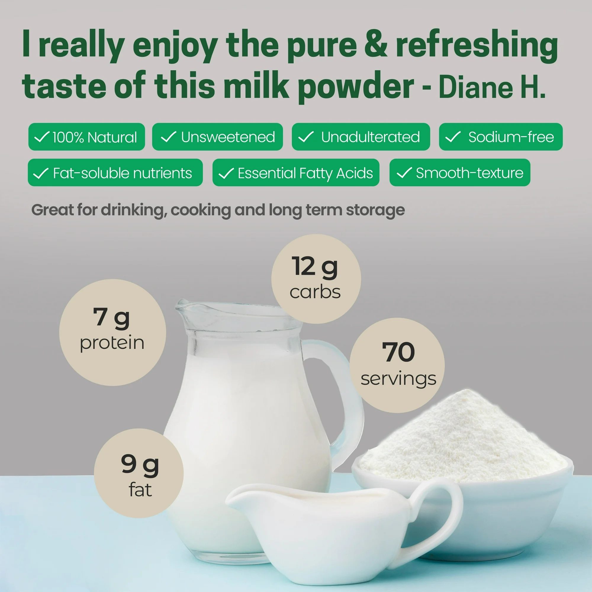 - Premium Quality: Made from pure cow milk with a shorter pasteurization and quicker drying process, our whole milk powder has a better taste than other milk powders. The powdered milk is GMO-free, hormone-free, gluten-free, and kosher-certified.